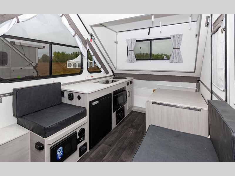 Start a new adventure in the easy to tow and easy to love LXE A-frame camper by Aliner!
