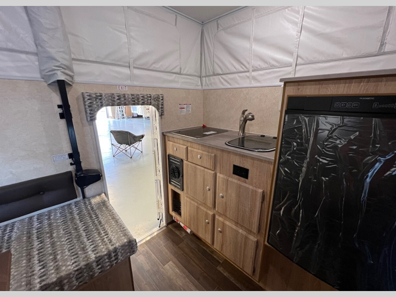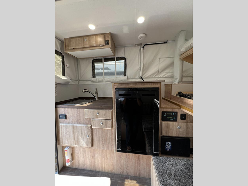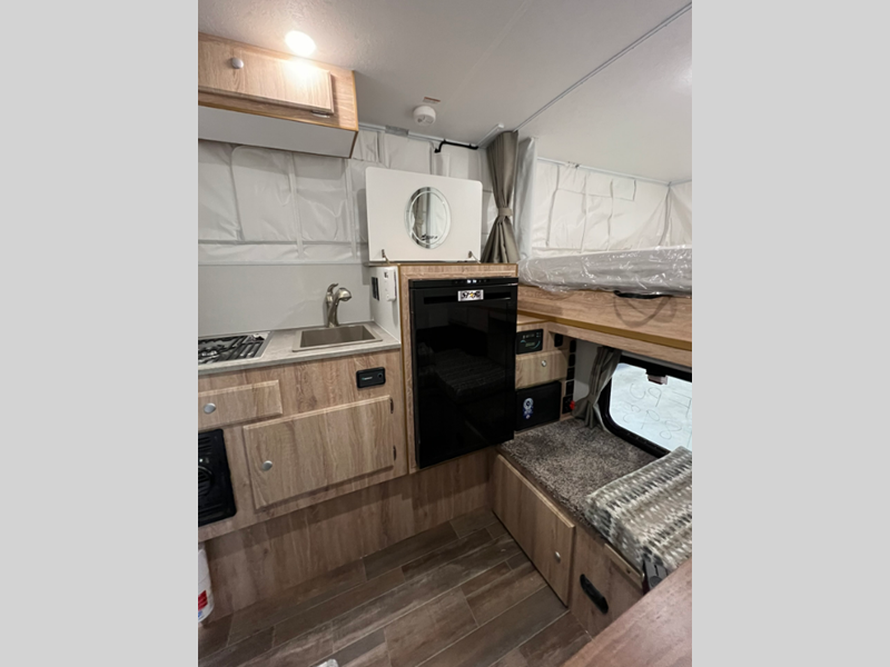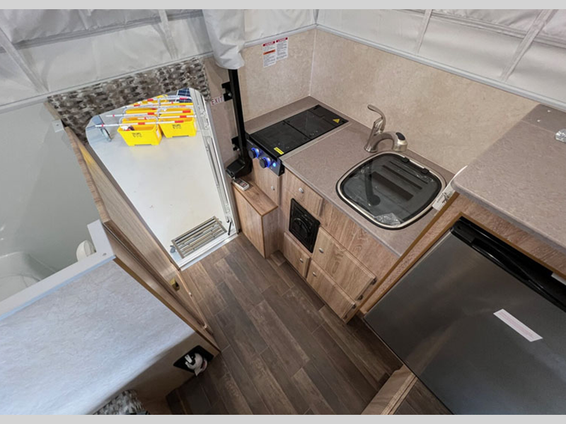 Sleeps 3 Length 12 ft 2 in Ext Width 6 ft 5 in Int Height 6 ft 11 in Dry Weight 1258 lbs Fresh Water Capacity 17 gals Refrigerator Type 12V Compressor Refrigerator Size 3.5 cu ft Cooktop Burners 2 Floor Length 6 ft 3 in Center of Gravity Front 22 in Truck Bed Size Short/Long Body Style Pop-Up Electrical Service 30 amp Solar Wattage 200 watts Similar Floorplans
