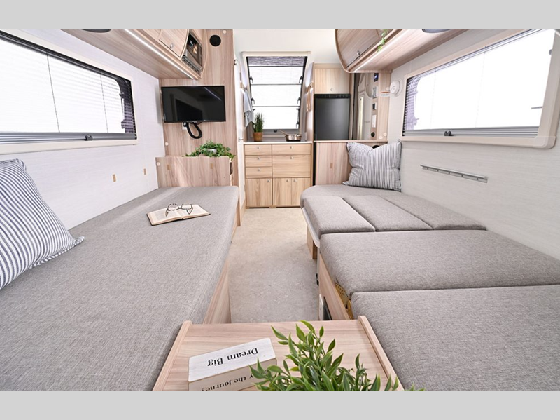 Slides 2 Length 16 ft 8 in Ext Width 7 ft 4 in Ext Height 8 ft 8 in Int Height 6 ft 4 in Exterior Color Elevation, Mountain Pass Hitch Weight 359 lbs Dry Weight 2605 lbs Fresh Water Capacity 25 gals Grey Water Capacity 18 gals Black Water Capacity 5 gals Tire Size 235/75R15 Refrigerator Type 12V Compressor Refrigerator Size 5 cu ft Cooktop Burners 2 Axle Weight 3900 lbs TV Info 24" Smart TV Axle Count 1 Shower Type Wet/Bath Shower